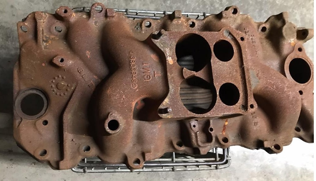 jetIntake Manifold, 396  427 66-68 Chevy Cast iron 325 & 350 HP, Quadrajet , oval port ,used original Dated B-5-8 = February 5 1968 cast# 3883948