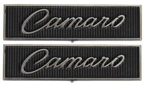 DOOR PANEL EMBLEMS, "CAMARO" FOR STANDARD INTERIOR, PAIR, REPRO