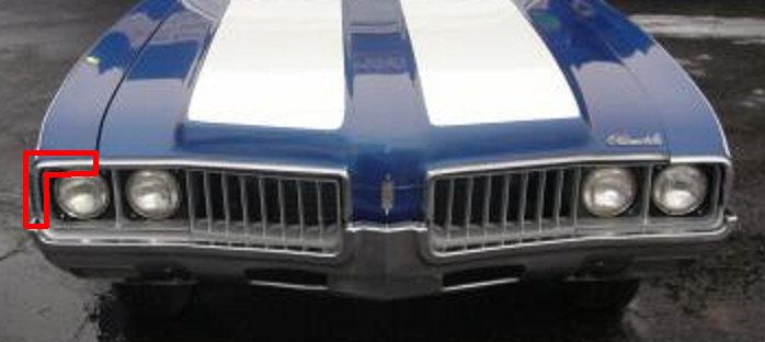 FENDER TO HEADLIGHT FILLER ,LEFT 69 CUTLASS 442