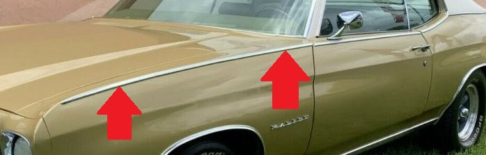 FENDER TOP REAR MOLDINGS ,NEW, PAIR, 68-72 CHEVELLE MONTY