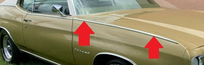 FENDER  EXTENSION MOLDINGS, 70 CH EL, REPRO, PAIR, BEF FEB BUILT CARS