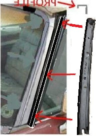 INSIDE WINDSHIELD TRIM, UNDER TOP BOW, USED