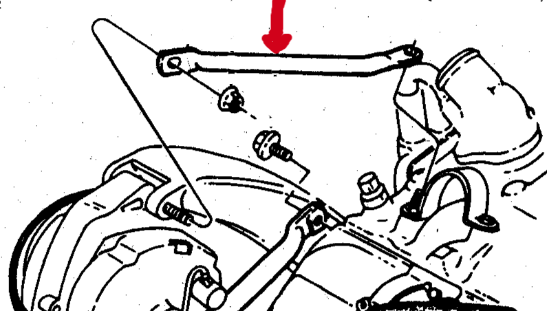 ALTERNATOR REAR BRACE ,LWR USED V8, 80-90 OLDS