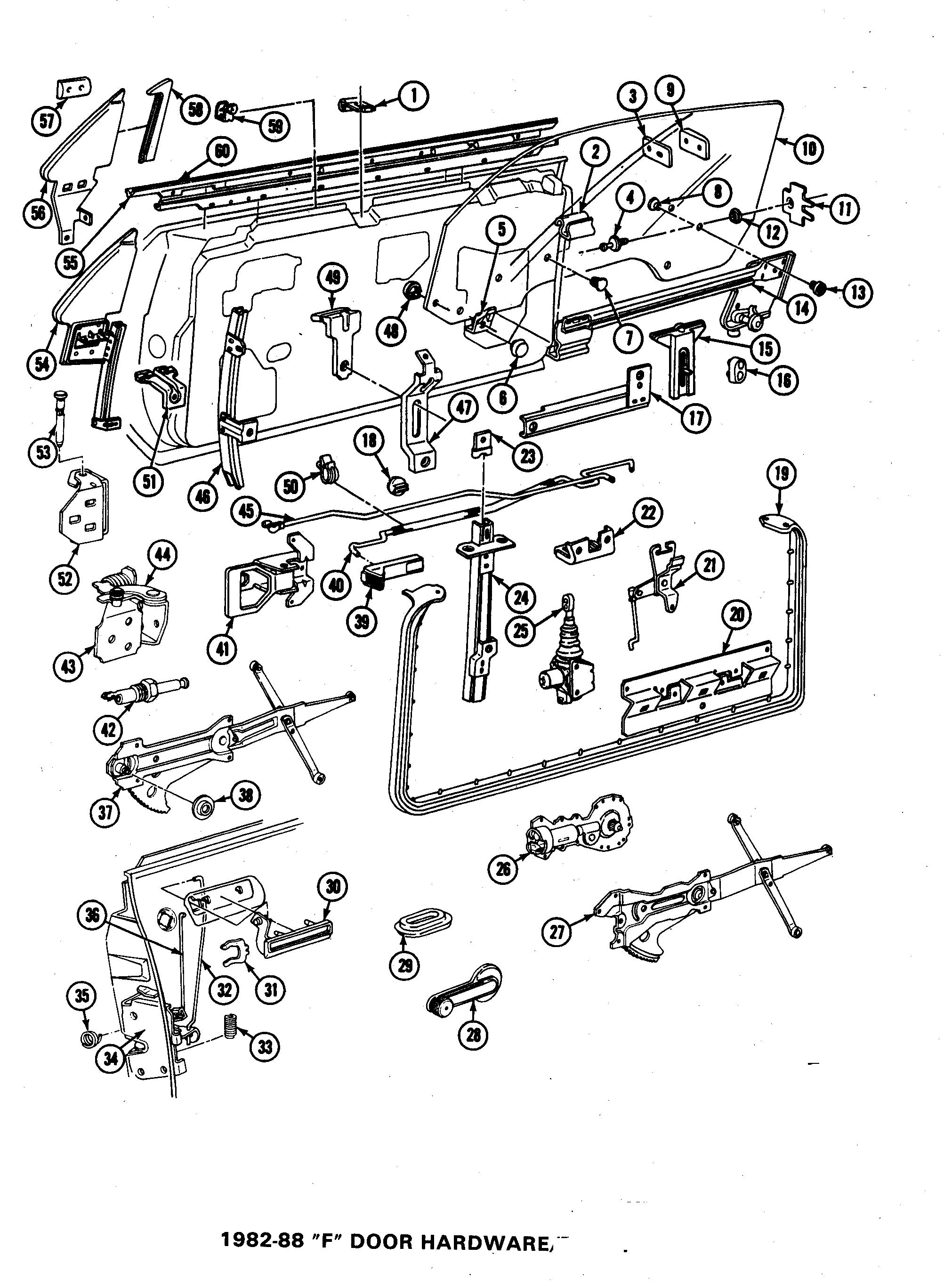 DOOR PARTS DIAGRAM 82-88 CAMARO TA FIREBIRD