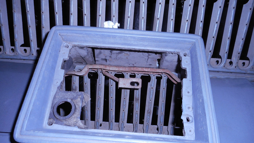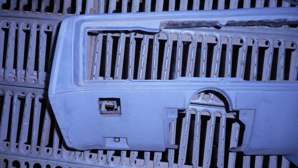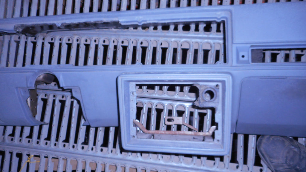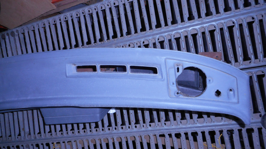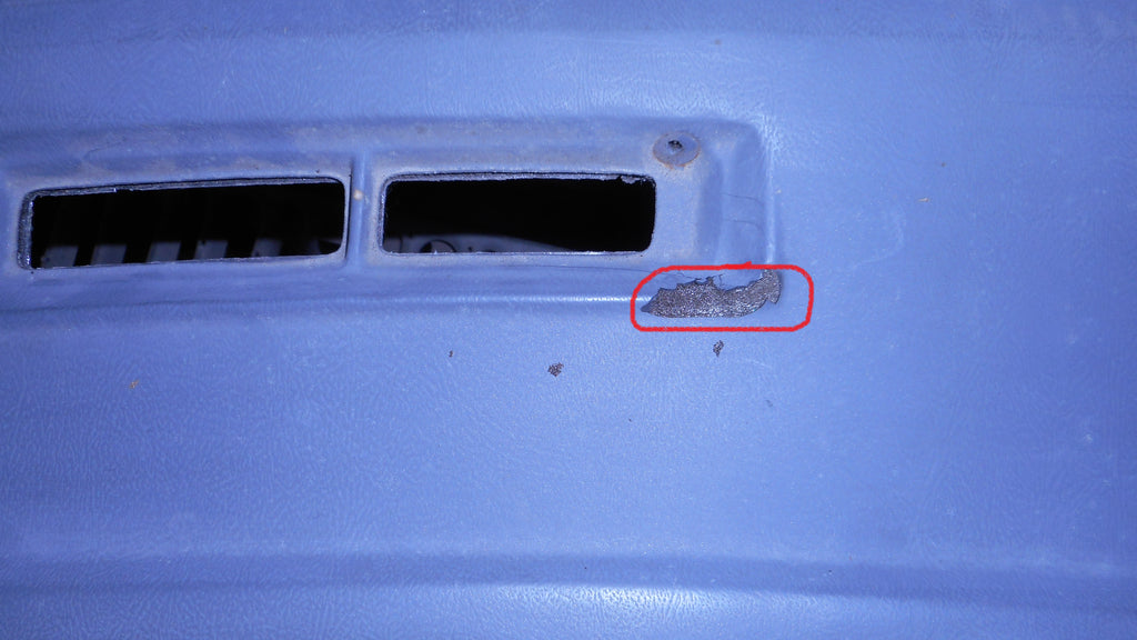 Dash Pad, with of dash, across width of dash, gray, original used. has small scrape at defrost vent opening , see red circle