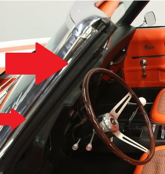 Windshield Pillar weather strip Retainer or molding, Driver side, convertible, U shaped channel, stainless steel, 18.5" long used
