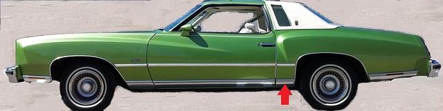 Quarter panel molding or chrome trim, lower front, driver side, mounts in front of rear of wheel, aluminum trim. used original