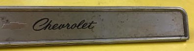 Dash Pad Strip , no AC car, silver with Chevrolet script , used 26.25" long OE# 3955433