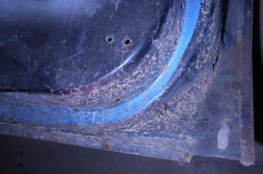 Door Shell, passenger side, for 2 door model sedan or post cars, used original, this door also has very small pieces missing at bottom rear corner, bare shell