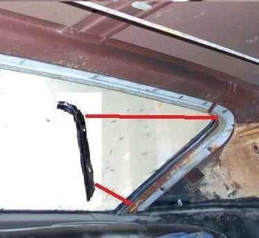 Rear window to Headliner Retainer, or tacking strip, driver side ,L-shaped steel strip, used, 2 door hardtop or post , 21" long OE# 76720125