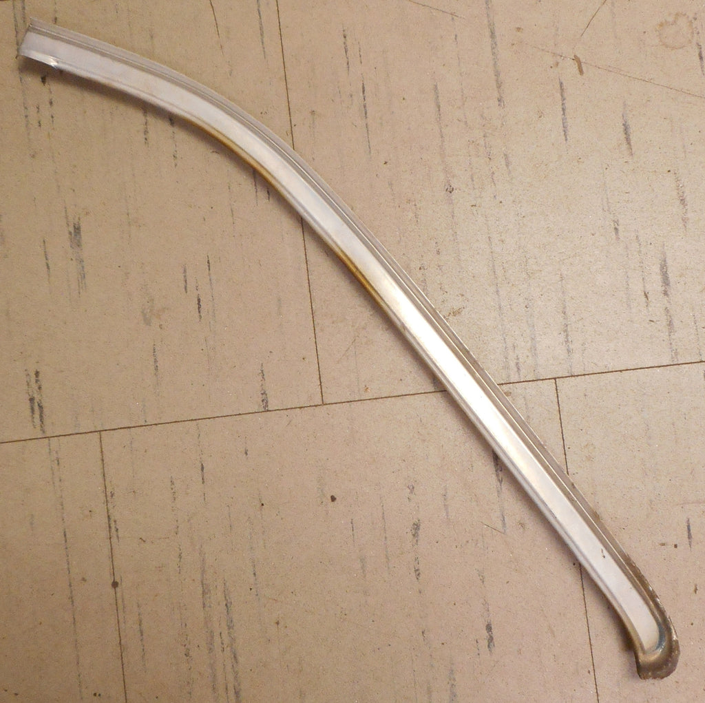 Quarter window rear upper outside molding or chrome trim, driver side, for 2 door sedan or post models, aluminum trim, used, OE# 4548437