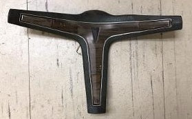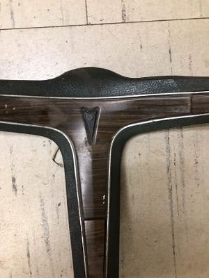 Steering Wheel spoke cover , for deluxe wheel, 3 spoke, horn buttons on spoke cover, missing arrowhead , has woodgrain, paint to match, used OE#489209